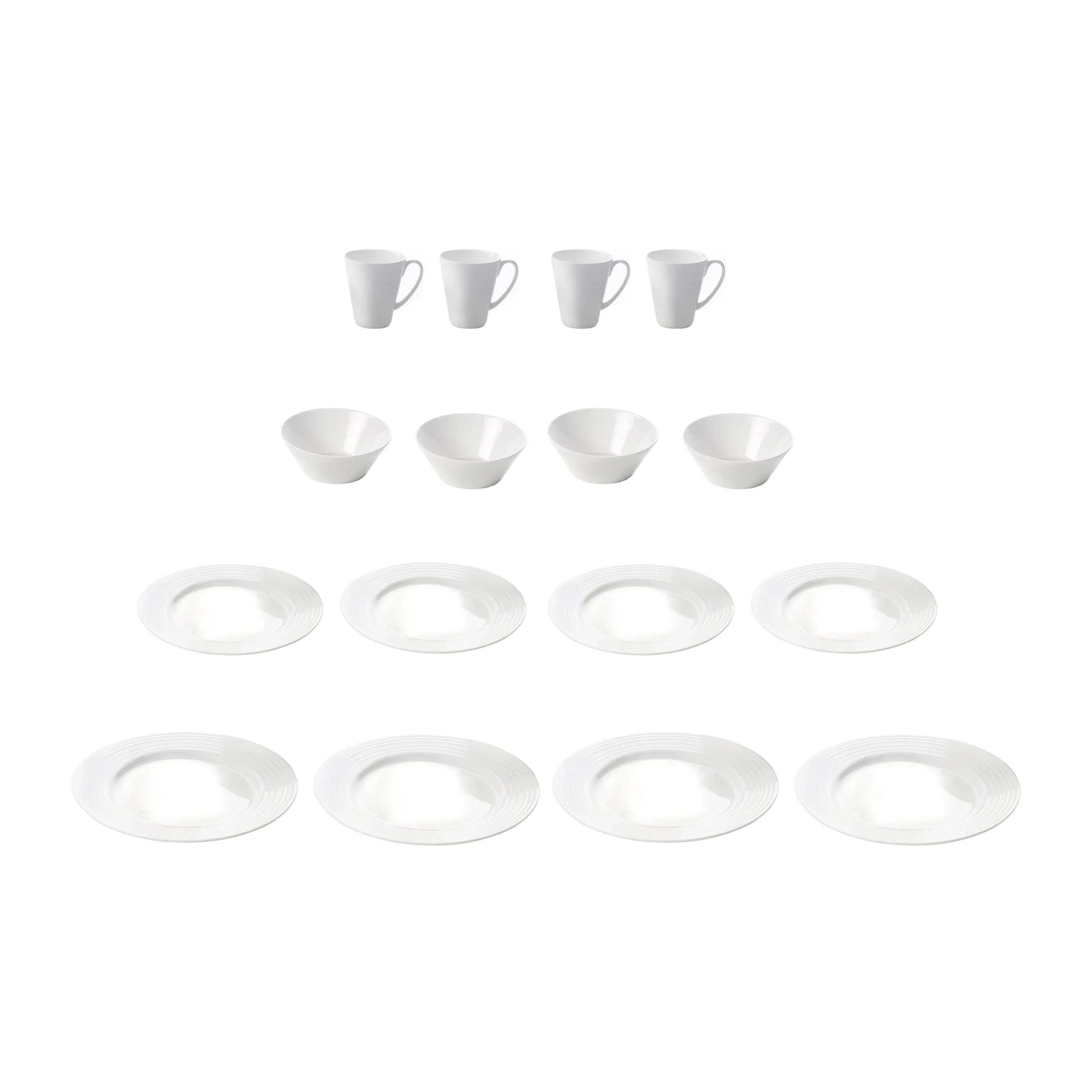 Kupit: Ø 7 cm, korkeus 14 cm, tilavuus 33 cl. - Sisältyvät osat4 ruokalautasta